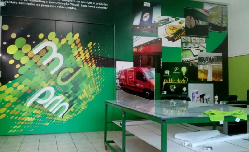 O adesivo de impressão digital pode ser aplicado em diferentes superfícies, como paredes, portas, balcões, vitrines, entre outros.